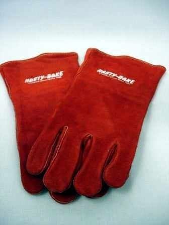 Red welding gloves with Kevlar. Used for removing the Hasty-Bake Heat Deflector when smoking, pulling out the Hasty-Bake Fire Box when adding charcoal, or any other situation that might be hot on the hands. Hasty-Bake logo is on each glove. Sold as a pair.