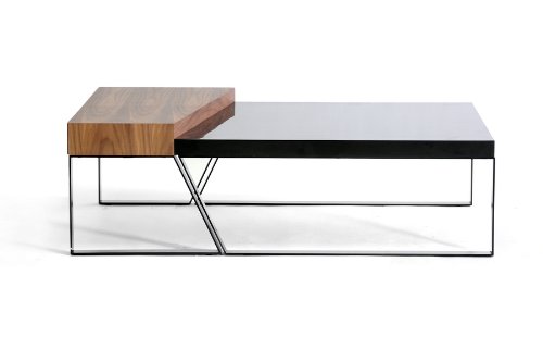Equal parts conversation piece and functional table, our cleverly-constructed Divyde Coffee Table can easily be anything you'd like it to be! The table takes modern architectural inspiration, a combination of several materials, and becomes your favorite piece of furniture. This living room table is actually two separate tables that can be arranged together or separately. Both pieces are made with a black-coated steel base topped with both engineered and solid woods, but the larger piece is slightly shorter and is finished with a black high gloss top whereas the smaller table is taller and features a walnut stain tabletop. Each table is completely freestanding and we recommend experimenting with the endless arrangements that are possible with this table! Rounding out a bevy of features is a drawer hidden on the side of the smaller table. To clean, wipe with a damp cloth. Made in China; assembly is required.
